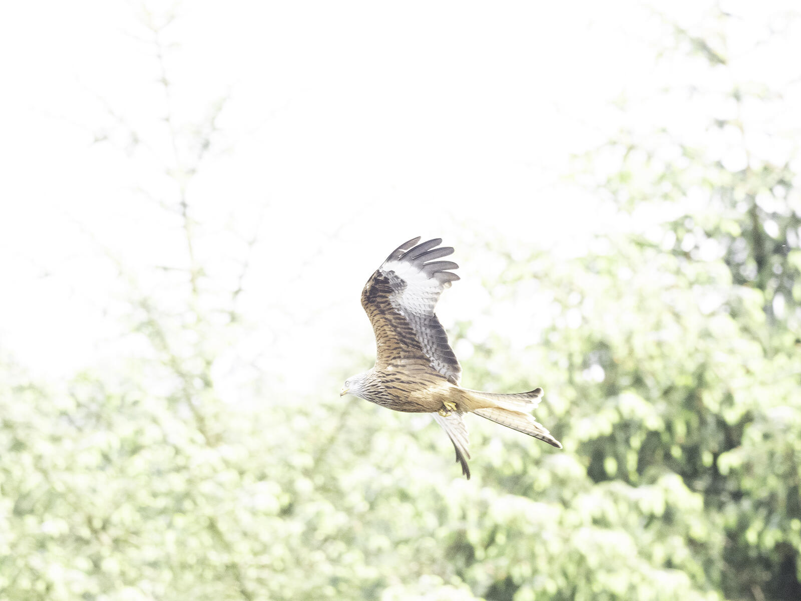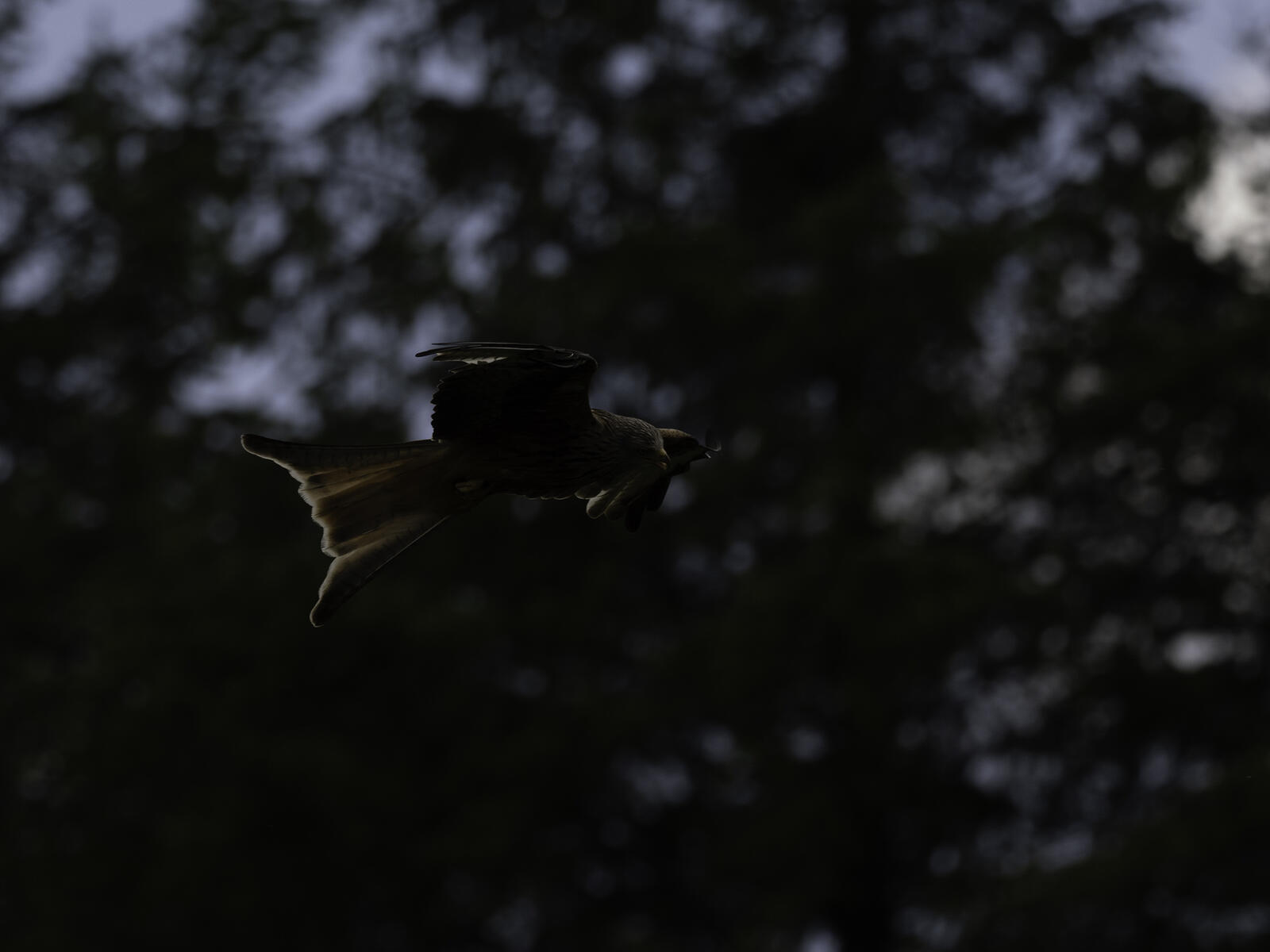 in response to the other thread re iso etc ,here's a sample of how much you can push dynamic range with the OM1 I suspect the MKii will be even better . at this particular site the birds can one minute be in bright skies then at ground level in the open or as in this case flying in front of dark pine trees there are no camera settings that can cope with such rapid changes and you basically have to take what's given and see what you can do with it .... this one is a vastly underexposed RAW file that once processed produced a half decent image later on today I will do the same process on a overexposed RAW file ..