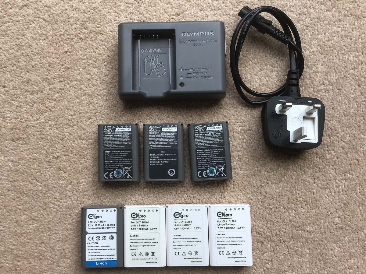 Olympus BLN1 batteries, Expro BLN-1 batteries and BCN-1 battery charger for BLN-1 batteries.