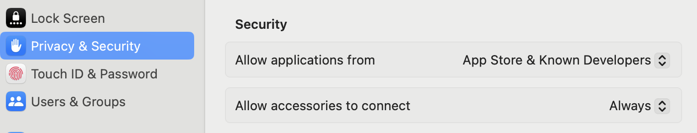 First up I would suggest to go into the Mac System settings from Apple Menu and have a look at the Privacy and Security settings - what do you see here for these settings: