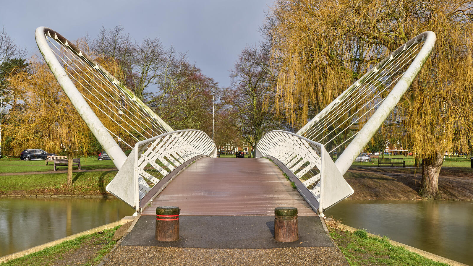 The Butterfly Bridge has wings but it doesn't fly! A pedestrian bridge but also good for cyclists and wheelchair / mobility scooter users.
