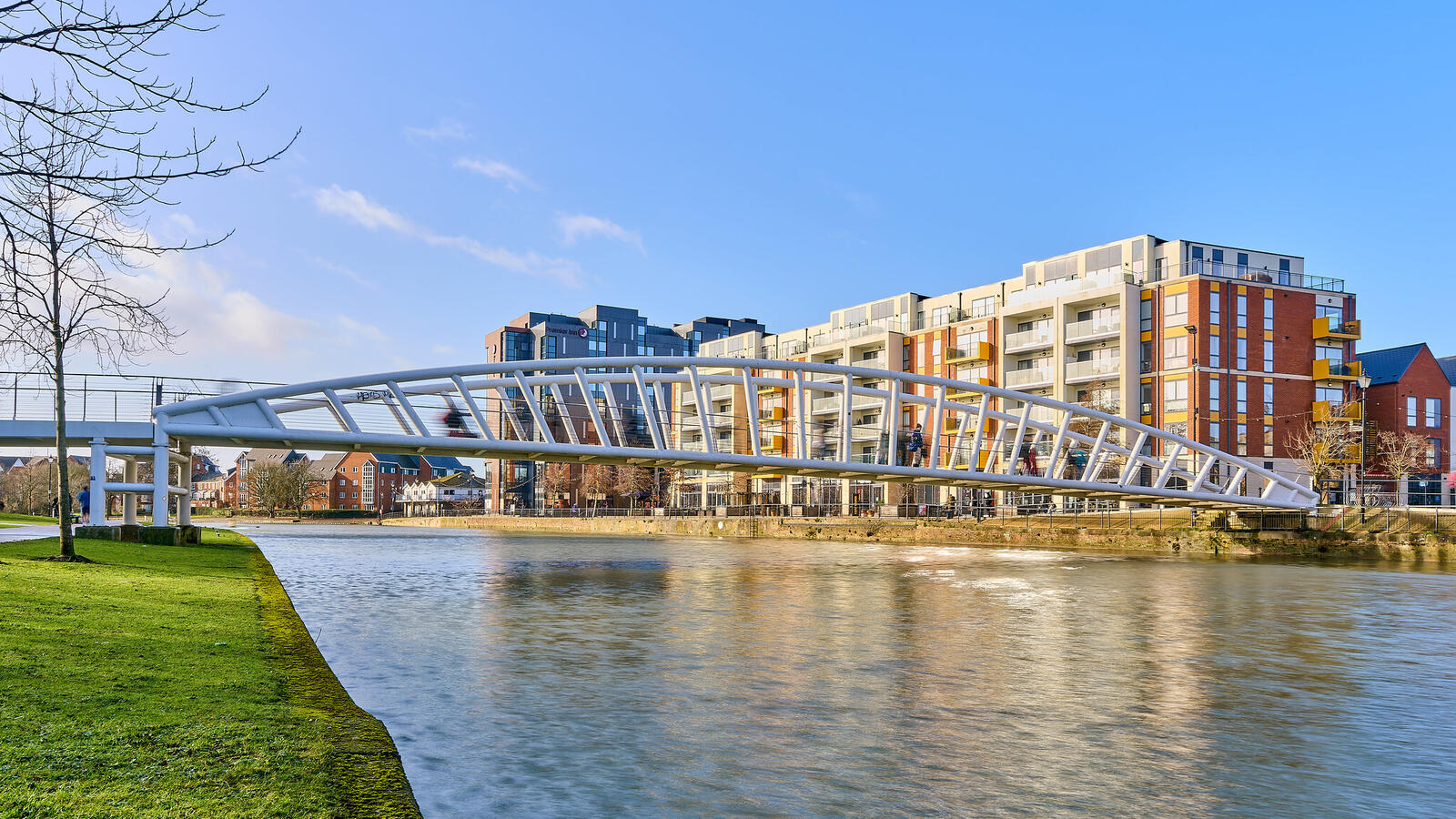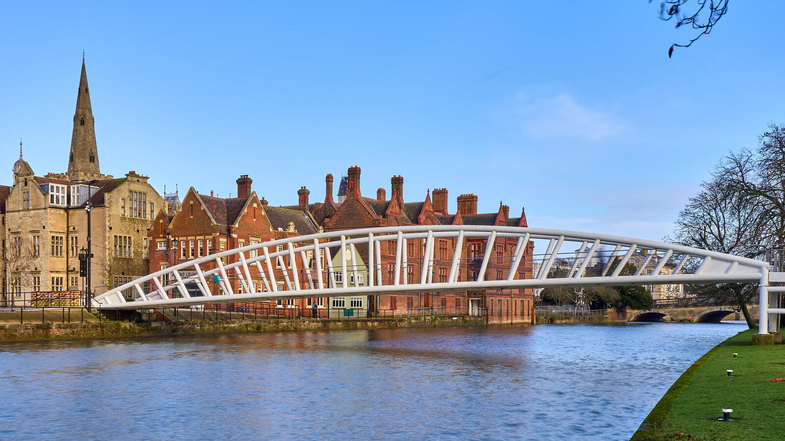 After the Town Bridge there is a modern footbridge, called the Riverside Bridge. It's near Bedford College so the students can cross here to get into the centre of the town.