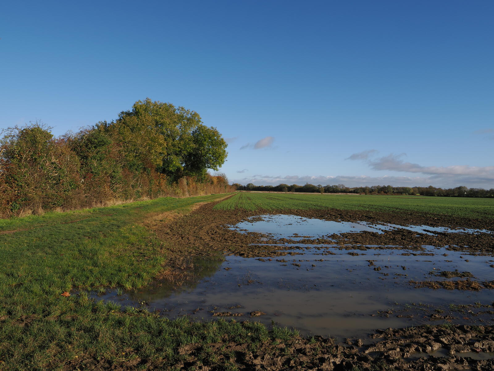 The field is getting water logged where the path across to this hedge