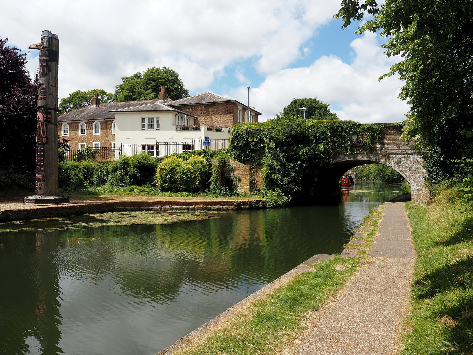 We took a walk along the Grand Union Canal for lunch at a waterside pub opposite this local point of interest. Below is the history of its arrival in the town.
