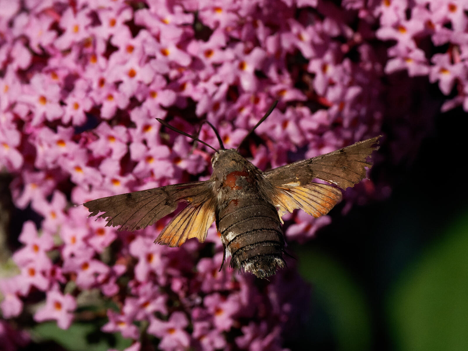 We see the odd Hummingbird Hawkmoth in our garden pretty much every year. Sometimes just for a few seconds - occasionally for a few days. This summer is turning out to be one of the best and we have had probably half a dozen or more passing through. Typically hyperactive and very mobile I've never had much joy trying to photograph them but yesterday evening we found one that spent more than 10 minutes on the same buddleia so I had enough time to try to photograph it. The nearest camera to hand was my OM-1 still with the 300mm and 2x TC mounted from the previous days birding trip so not the obvious choice. However it worked out in the end although I found that I needed at least 1/10000 to freeze the wings which meant going up to 12800 ISO. Fortunately DxO PL5 rendered the photos nicely!