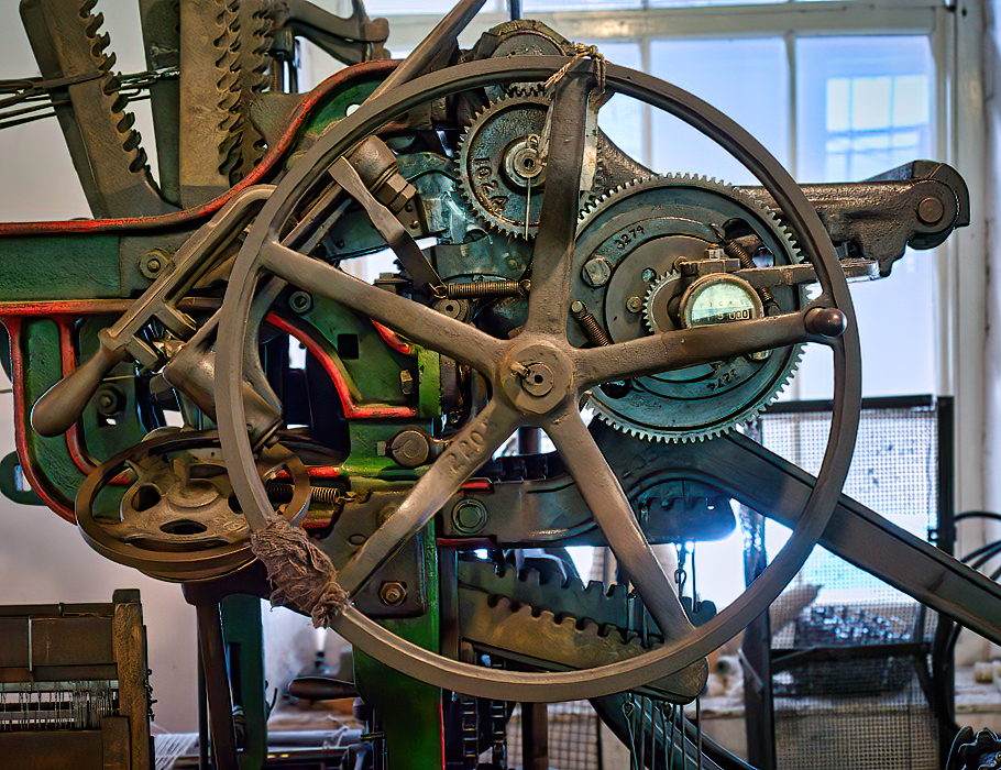 Dave, excellent assortment of gears, wheels, levers, springs, cables, bolts, nuts and much more. I oiled an antique sewing machine a few months ago and was blown away by that ingenious invention. The machinery you so professional photographed, would blow my mind! Excellent work, focus, colors, perspective, etc.