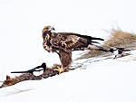 Back in February at the coldest of winter, I spent some time photographing Golden Eagles from a hide designed for that purpose. Thet implied many hours waiting motionless in silence as this species is extremely wary and will leave the site, not to return for many days if they suspect human presence. Several layers of clothing were necessary to endure the -10C.