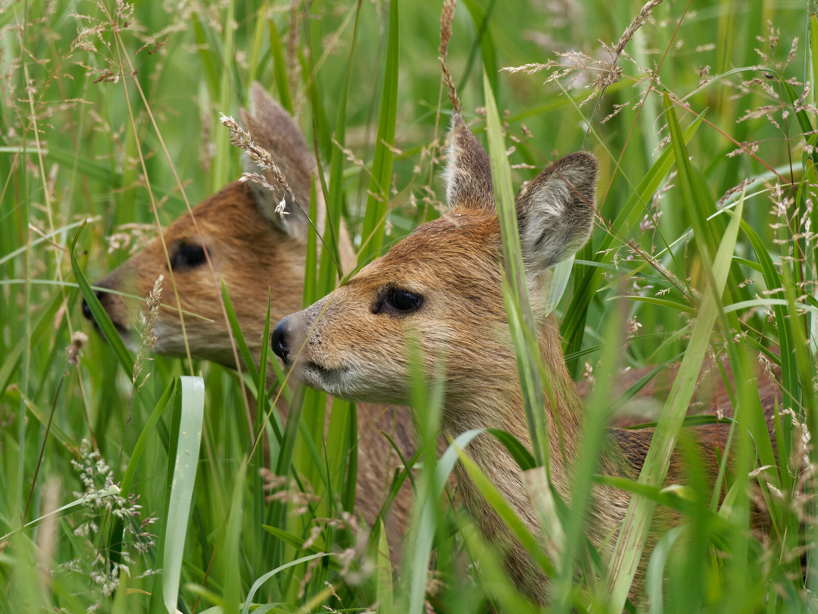 Chinese Water Deer have become abundant on our marshes (near the junction of the Waveney & Yare valleys on the Norfolk/Suffolk border). I came across these two young fawns earlier today. For once, I saw them before they saw me despite being only 5m or so from them! Hard to tell from this photo but these were about the size of a hare.