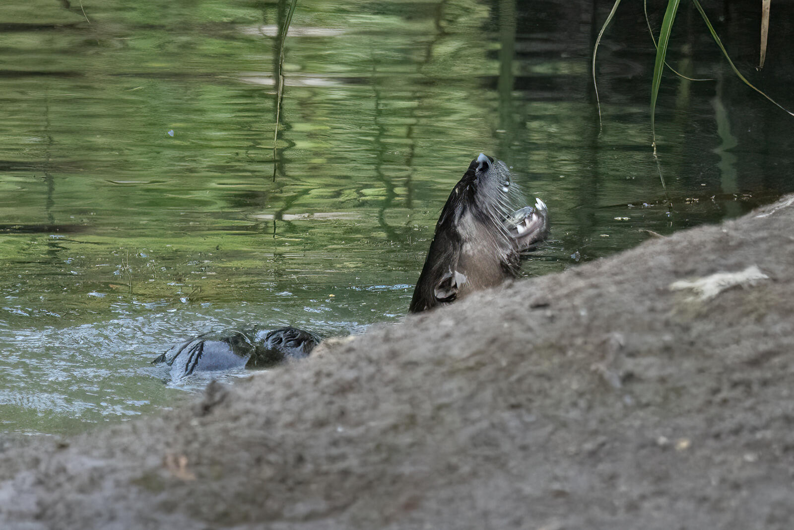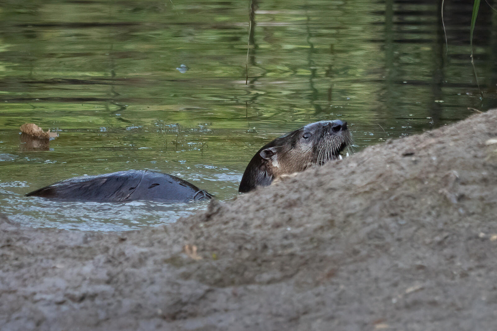 River otter. I have captured them several times on my trail/game cameras at night, but this was the first time to see it in person. Our pond is getting quite low, so the fish are getting concentrated in smaller pools. Easy dining for Mr (or Ms) Otter. I tried to shoot some video, but it was really shaky.