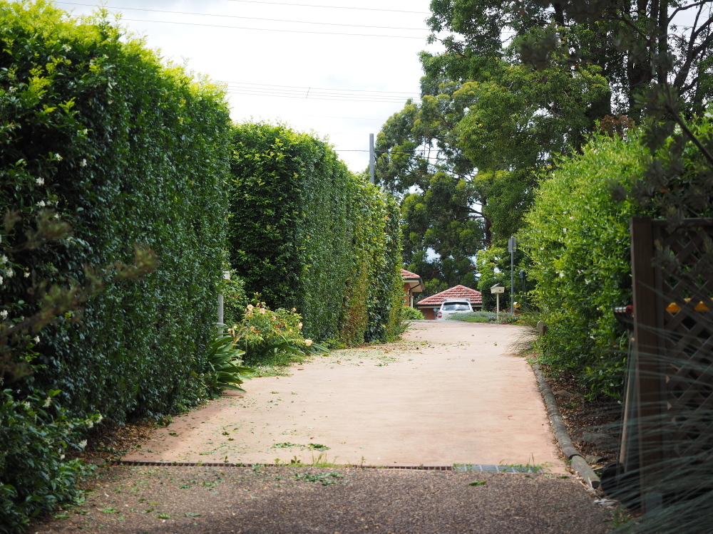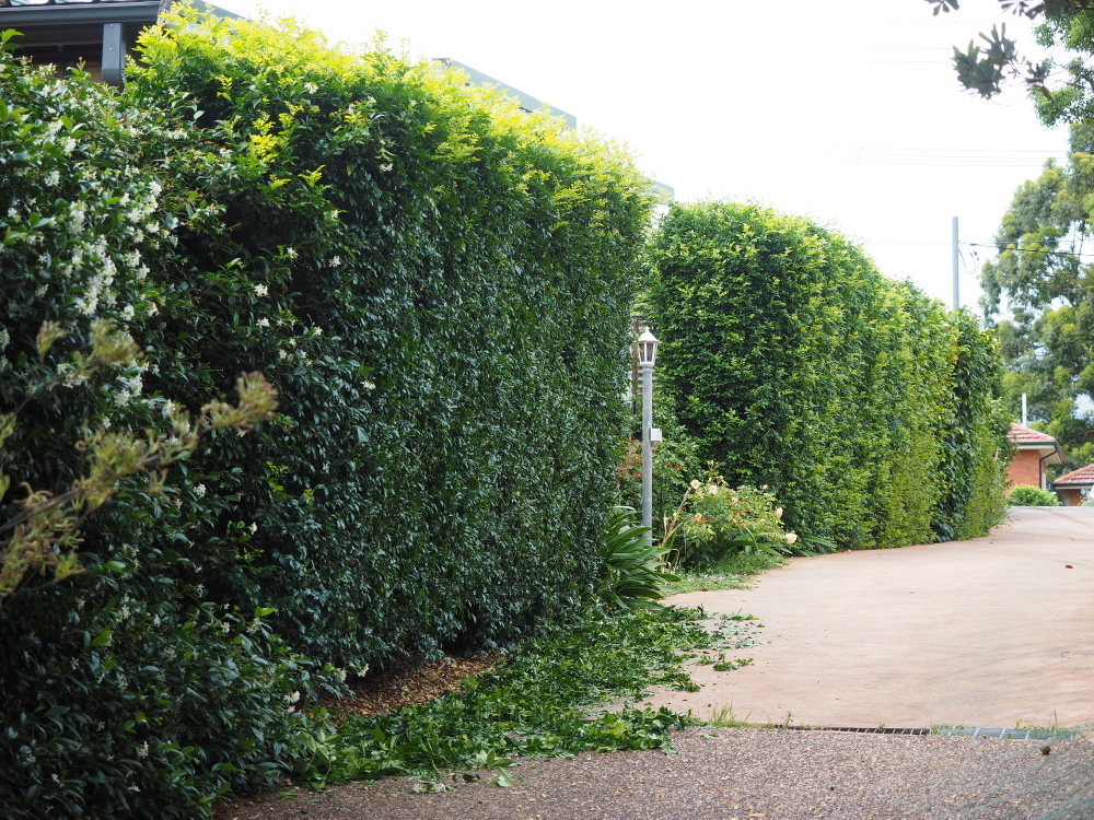 I've got to wait a few more weeks before I can wield the heavier pole hedge trimmer to do the top).