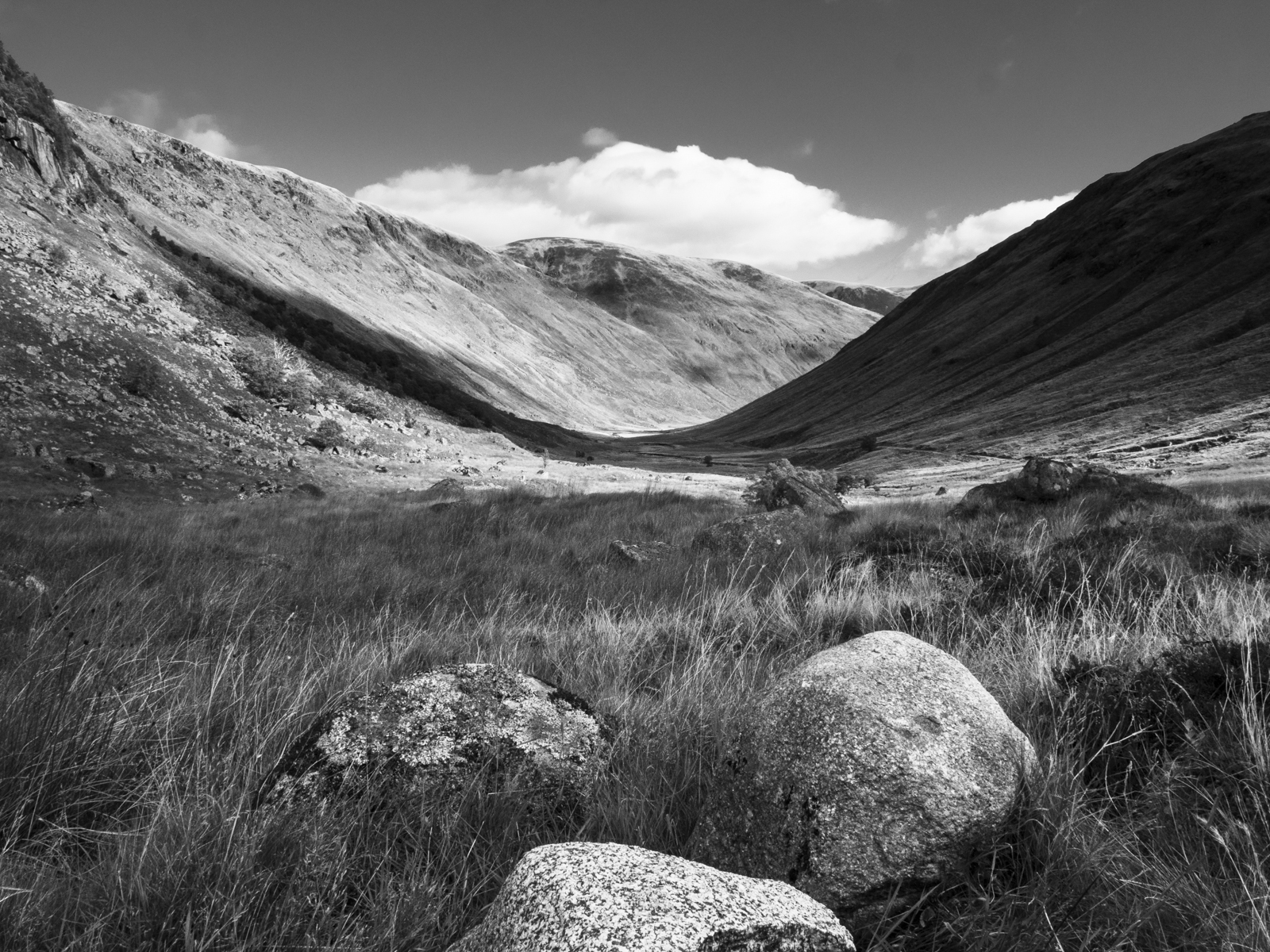 The near cliffs on the left are 1000ft (300m) high and have a number of very hard rock and ice routes.