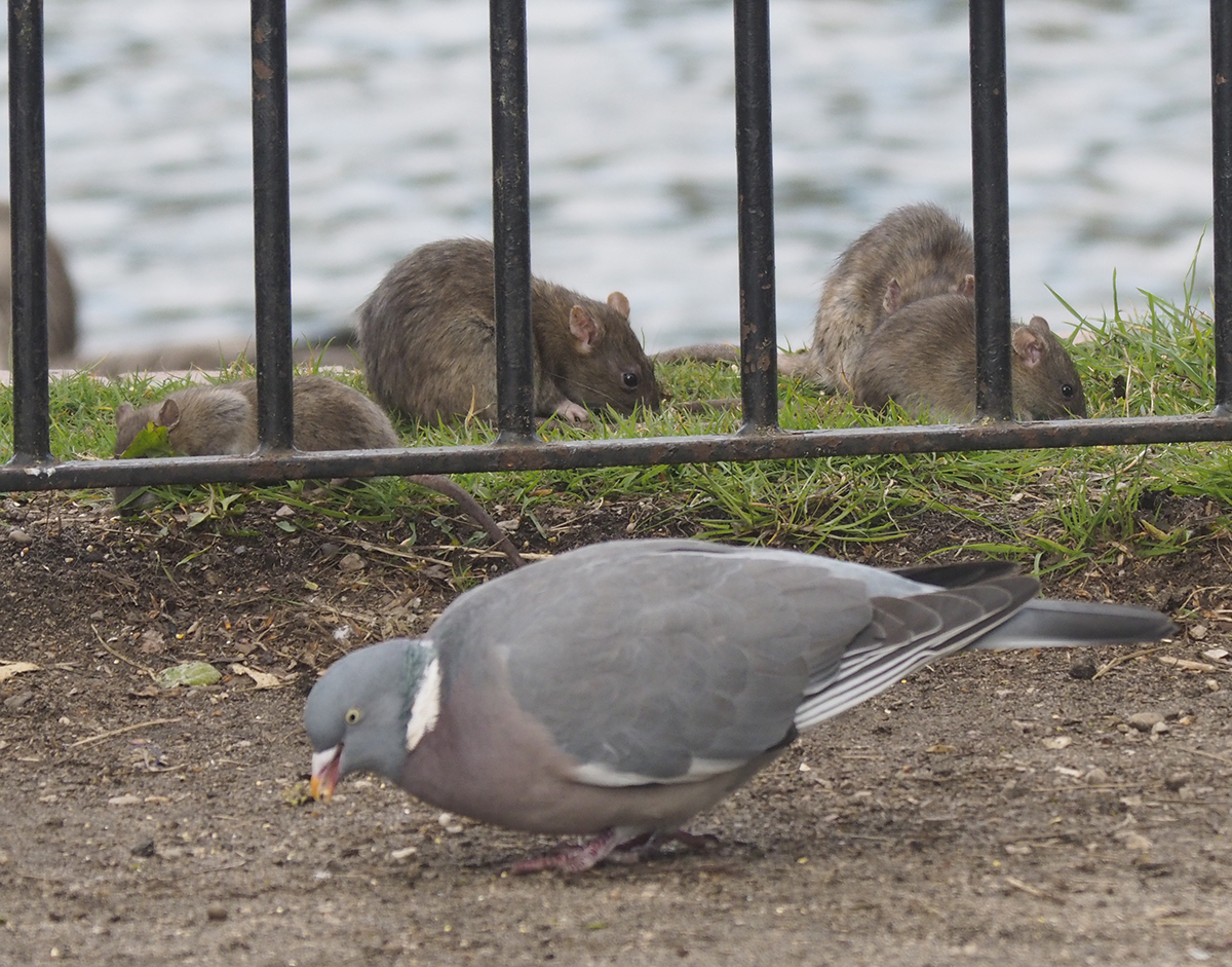 A family of rats at the duck feeding station at our local park. The rats are fairly tame and come out to feed if you just sit and wait a while.