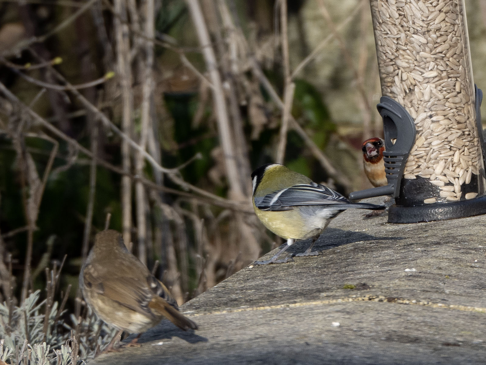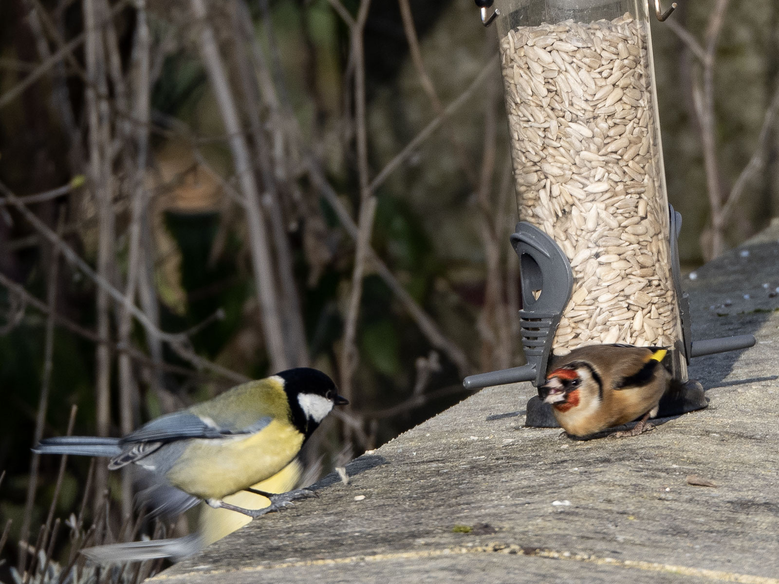 Sparrows and great tits,they know their place when the goldfinch is at the feeder