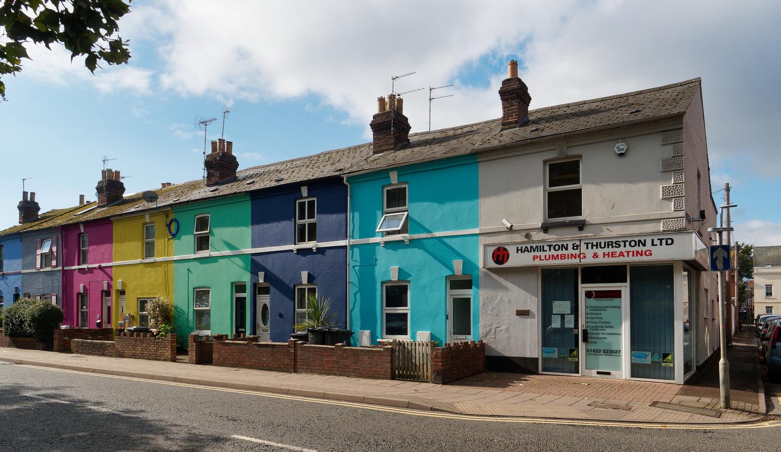 There are two areas in the city centre of Gloucester where residents have painted the exterior of their houses. What a simple way of brightening otherwise ordinary streets.