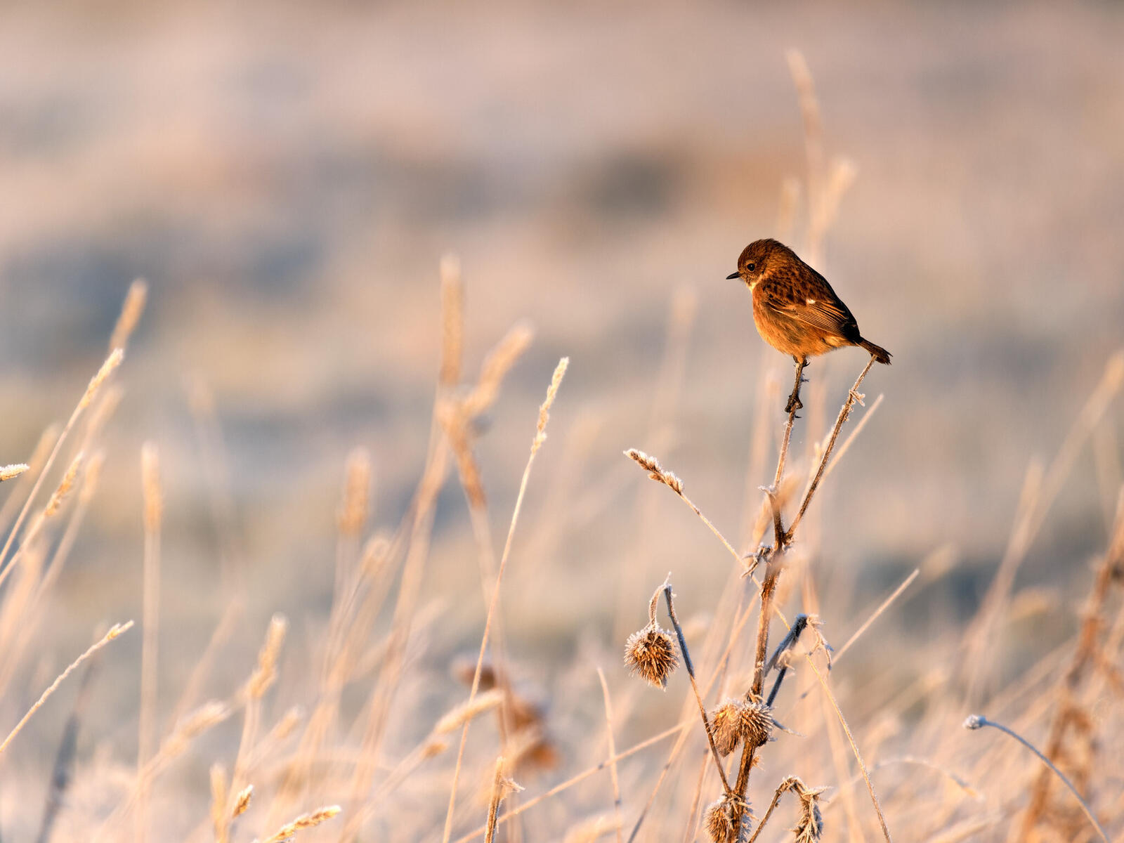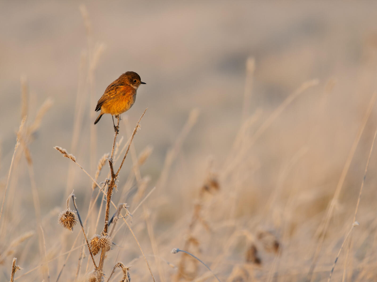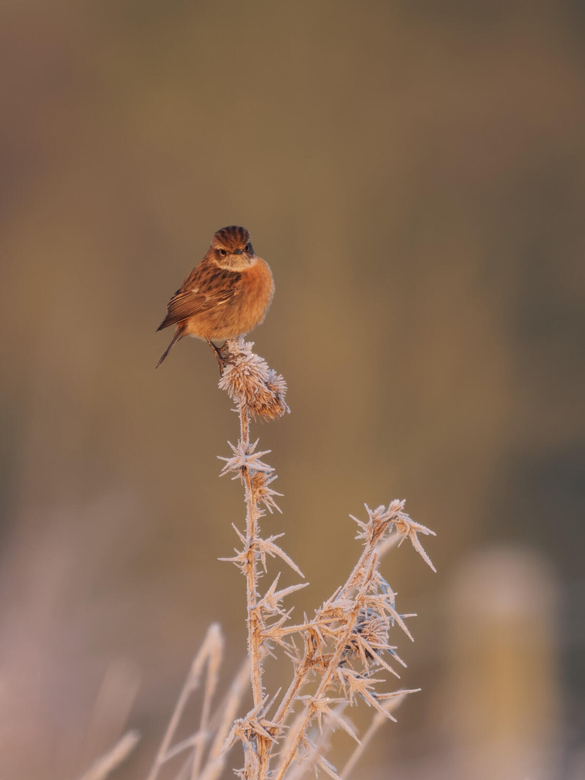 This morning was ideal for a Barn Owl session, early morning glow and a frost just no Owl today within range, so settled for this Stonechat- all low res images.