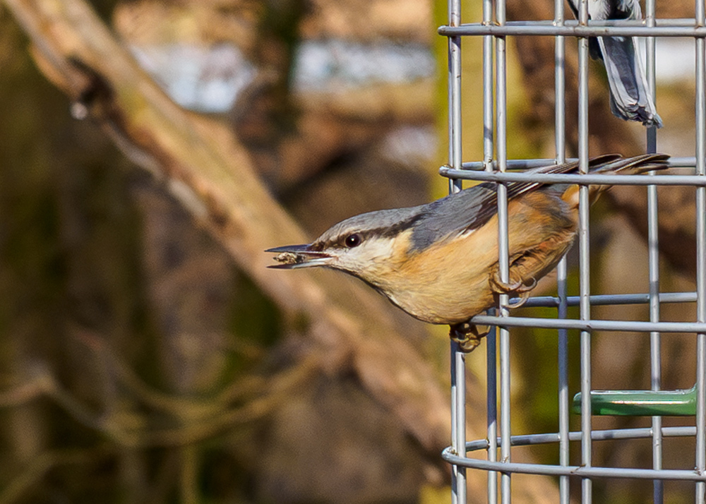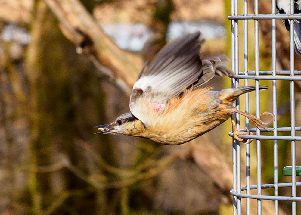 don't normally take pix on bird feeders, but wanted to try and get inflight pix of a nuthatch .They are really fast and never stay still.Thank goodness for pro capture