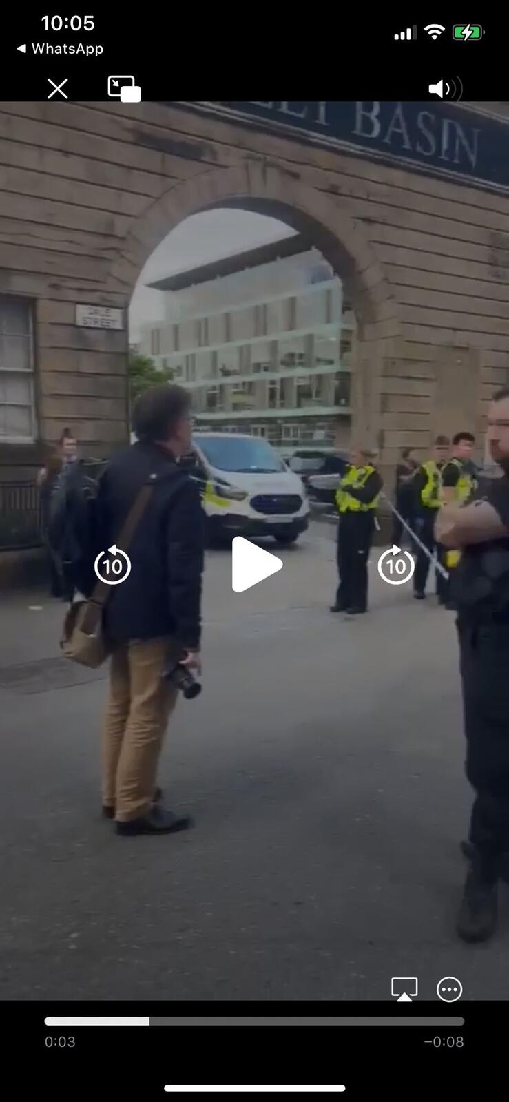 I was having a post-work beer at the Pelican on Dale Street Manchester when the evening suddenly filled with the sound of multiple sirens. About 250 yards down the road, two men had been stabbed in what turned out to be a targeted attack. I walked over just as the police tape cordoned off the area and shot a few pictures of both the scene and also the crowd around the scene. Here are two that I think explain the context and the tension.