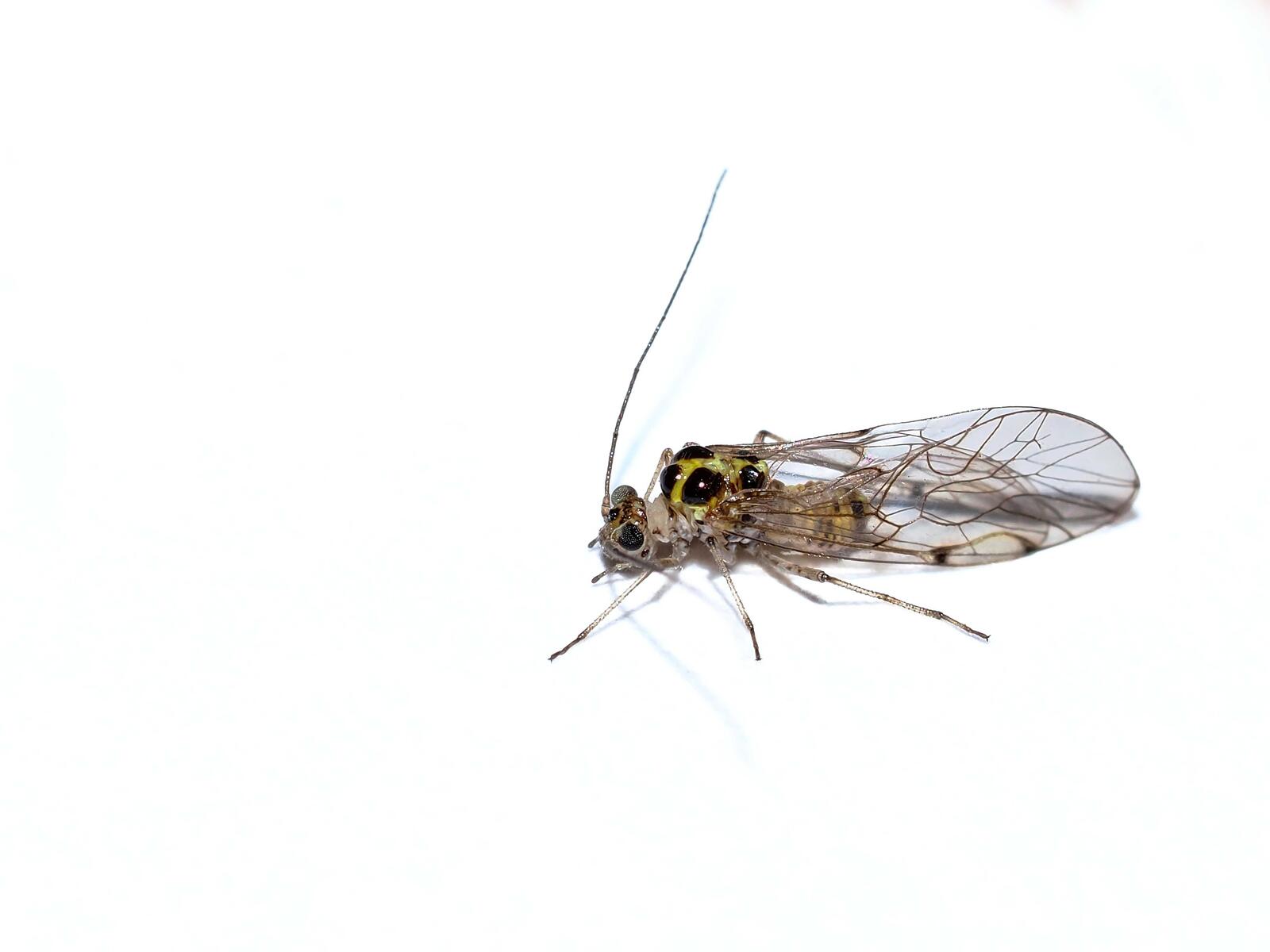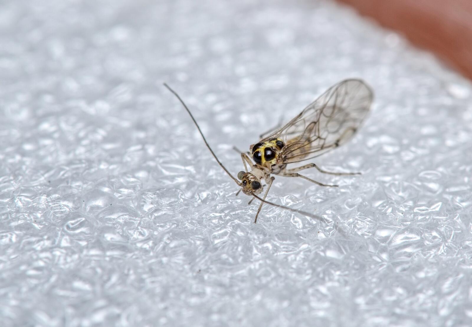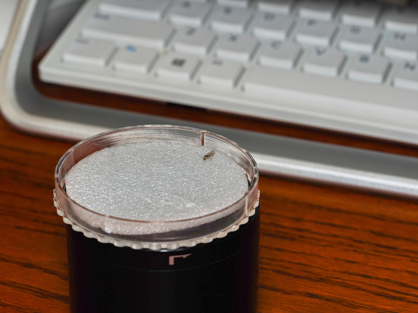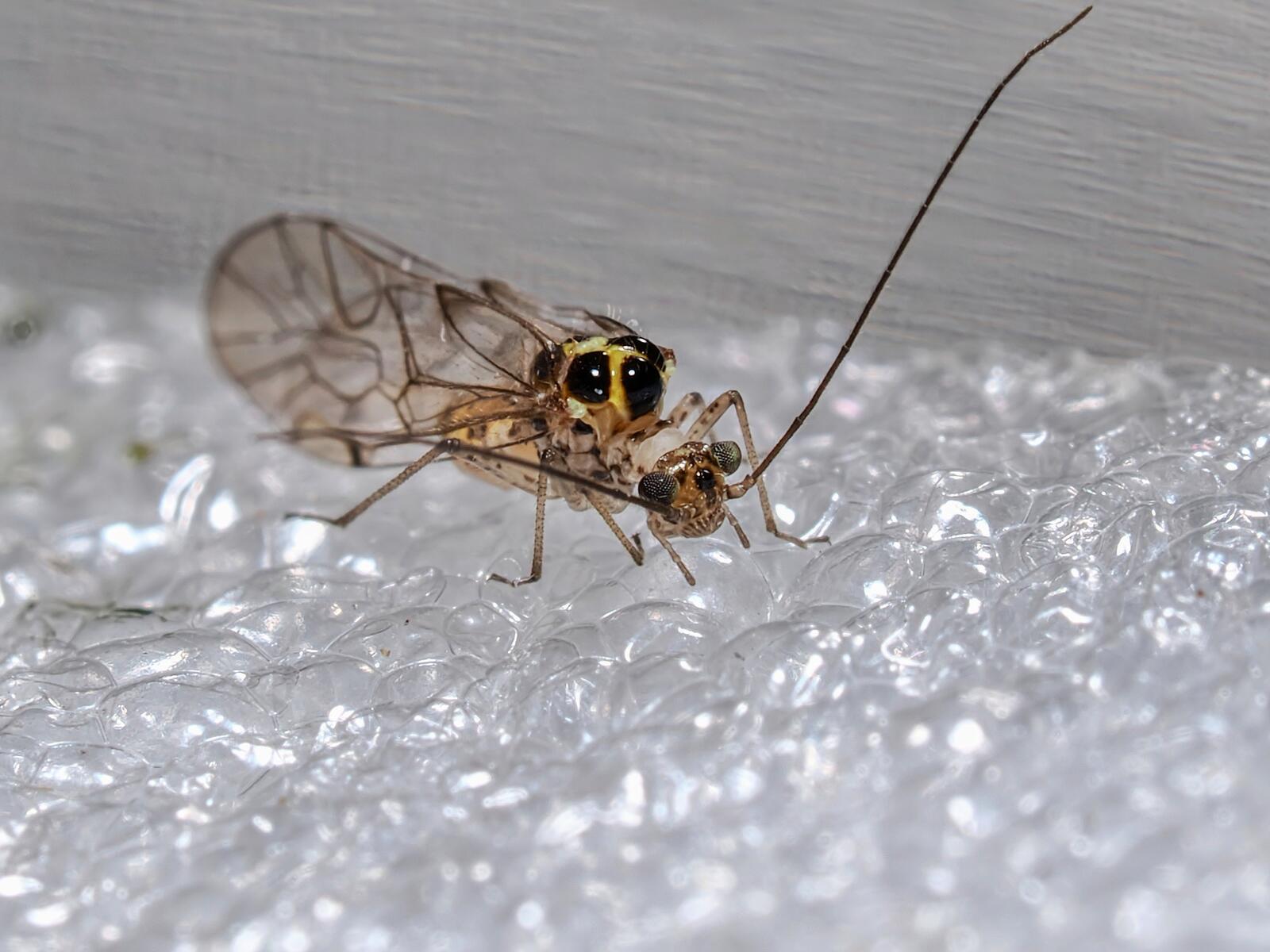 I found this tiny critter under a flowerpot on my deck. To show how tiny it is I have it in plastic container placed on top of the lens hood from the Olympus 6-mm F2.8 Macro Lens.