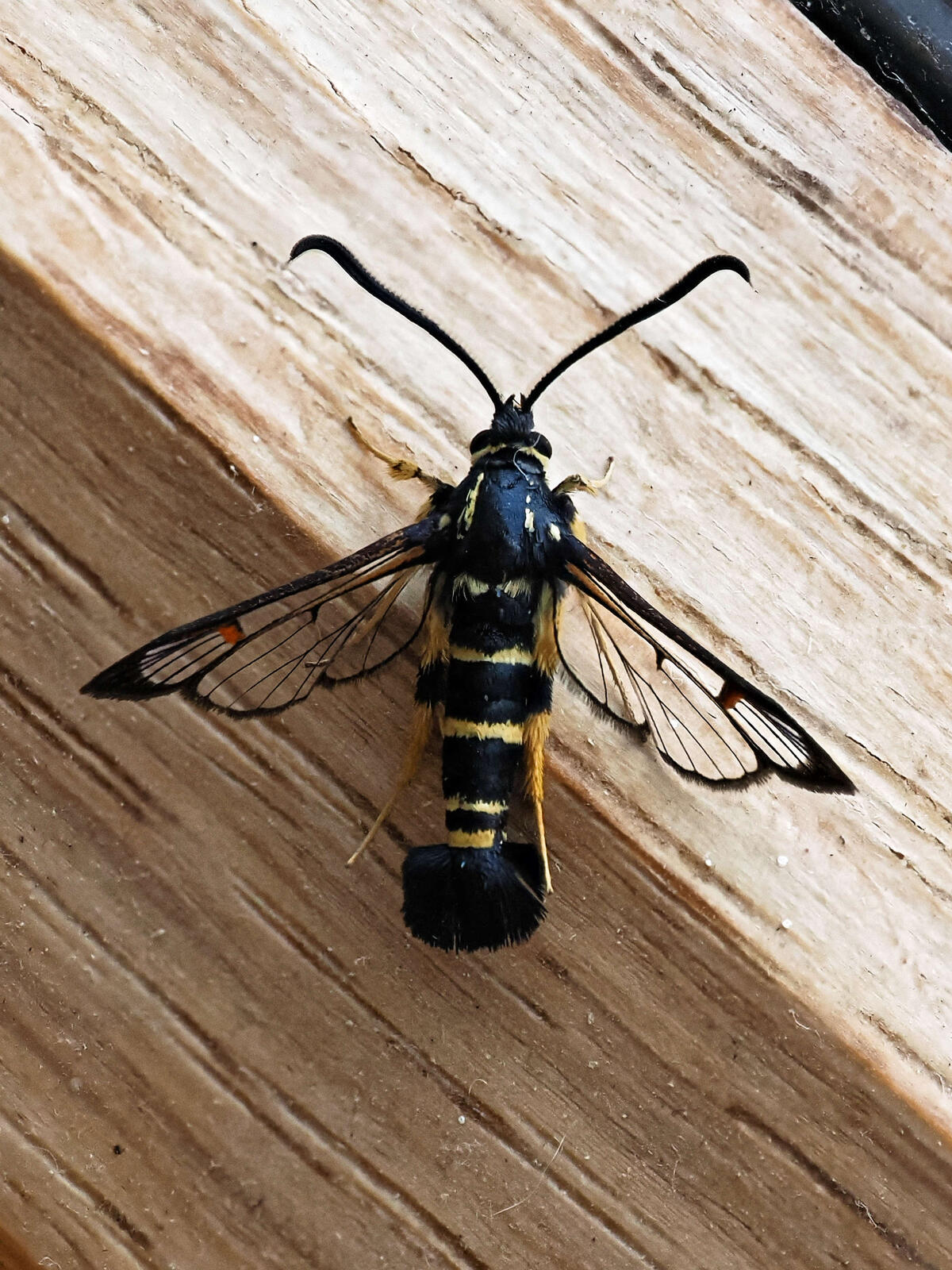 My wife (the "moth-er") has been trying pheromone lures for several years - originally for Clearwings (a distinctive group of day flying moths) but more recently some other macro and micro moth species. Their development has revolutionised our understanding of the population and distribution of many once-poorly known species. This afternoon she ran a trap with the specific lure for Yellow-legged Clearwing - a species we attract in small numbers most years - and was fortunate to catch one. As she knew I had a new "toy" to play with I had a brief opportunity to try and photograph the moth before it either escaped (most likely being a day time flyer) or was released. Here are two attempts both using the OM-1 and my new 90mm f3.5 Macro, the first a single shot, the second an in-camera focus stack of 10 images. In this case the results are very close - the focus stacked image manages to get the whole insect in focus but the minute movements of a very active insect just about to fly leave a slight lack of sharpness in the right wing in particular.
