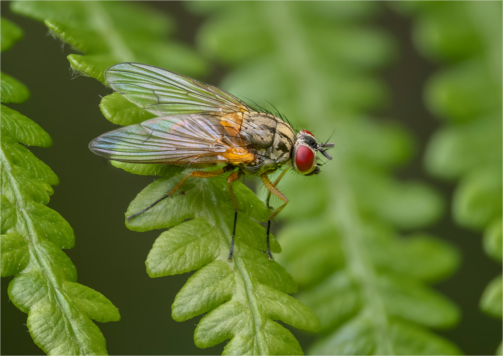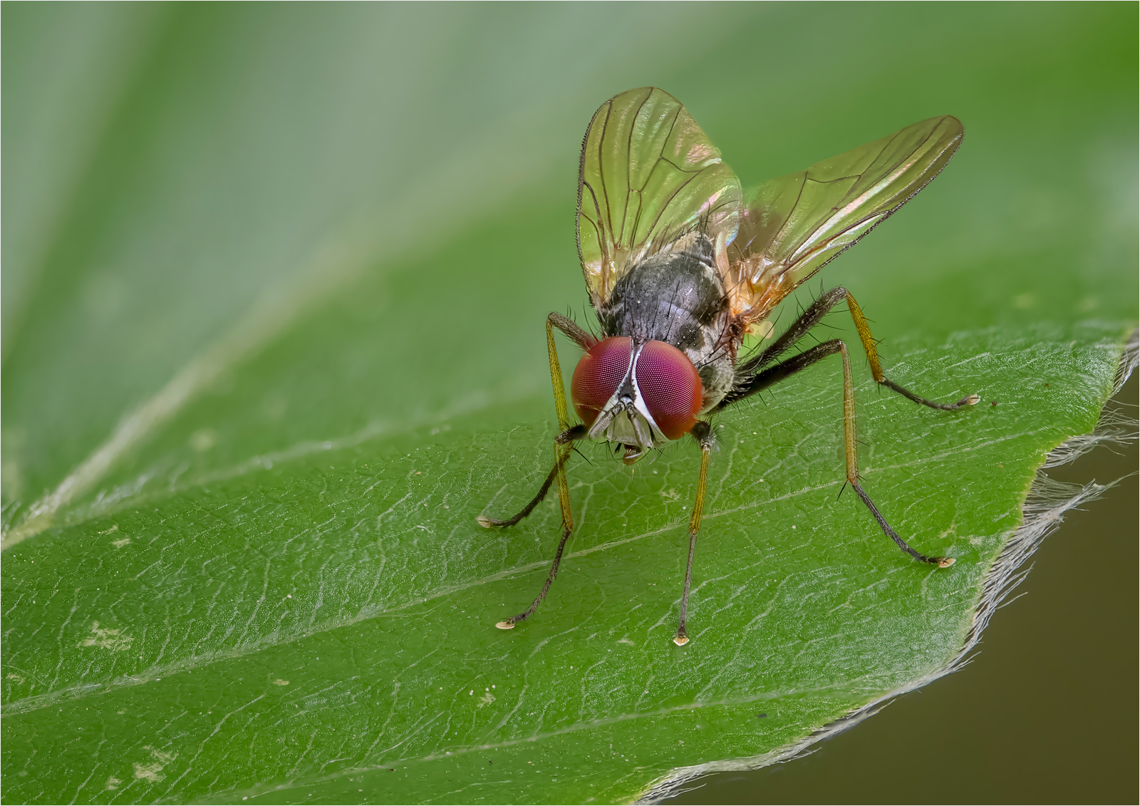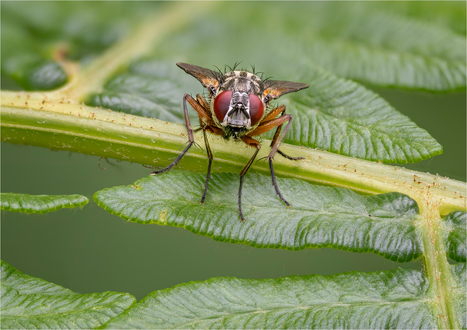 At last there has been some suitable weather to go out and shoot flies. These are all stacked images taken with my OM-1 and 90mm macro, and processed in Zerene Stacker. I used a monopod and supporting stick to steady the camera, and natural light.