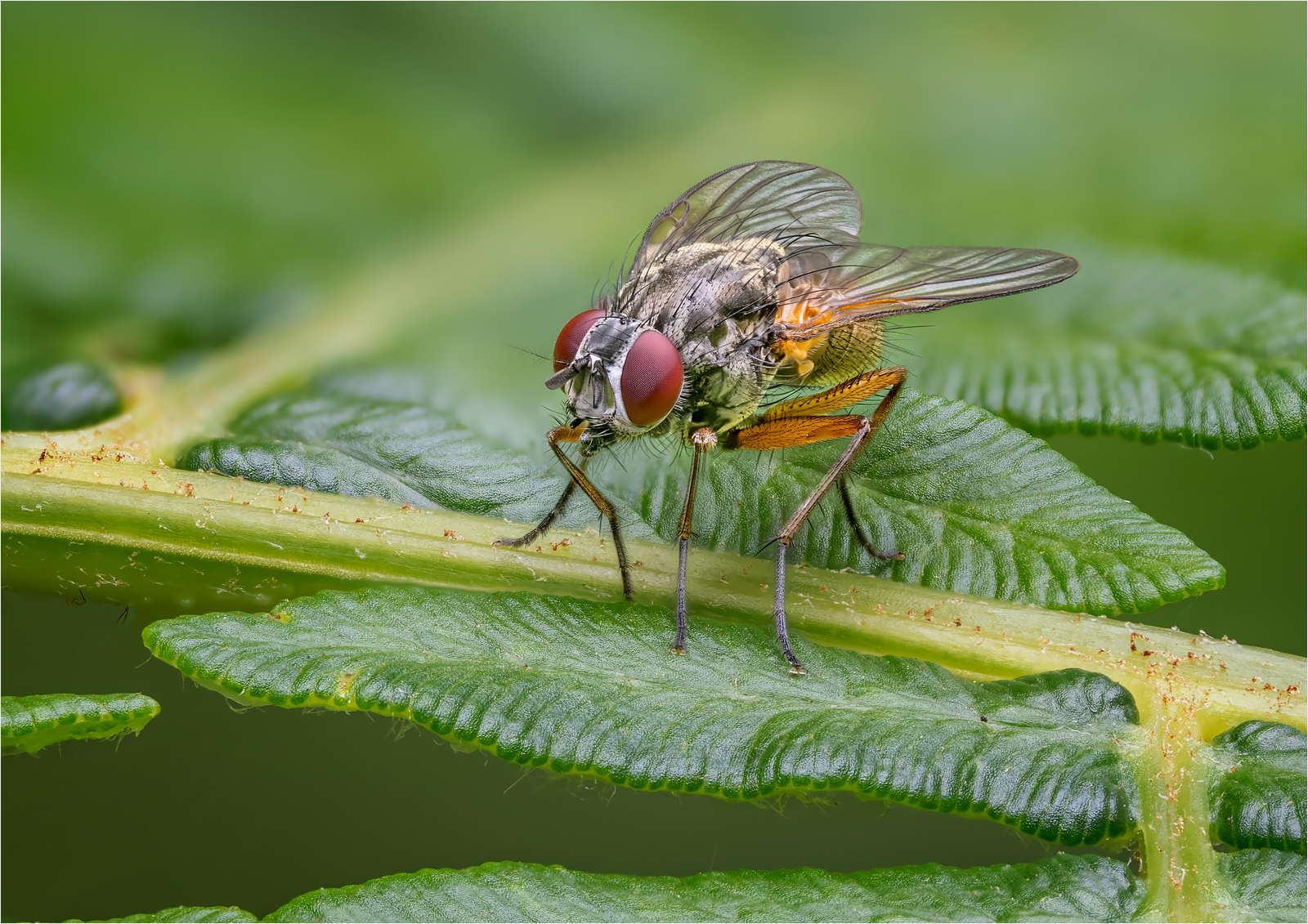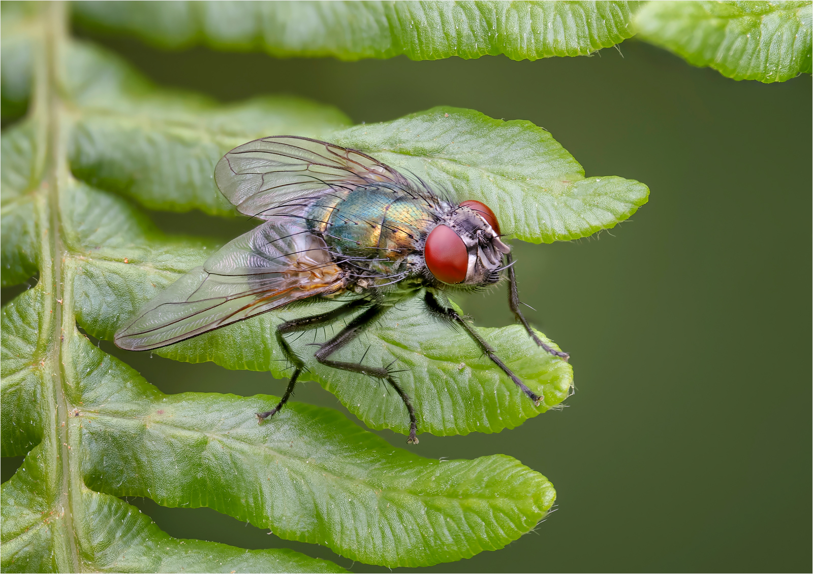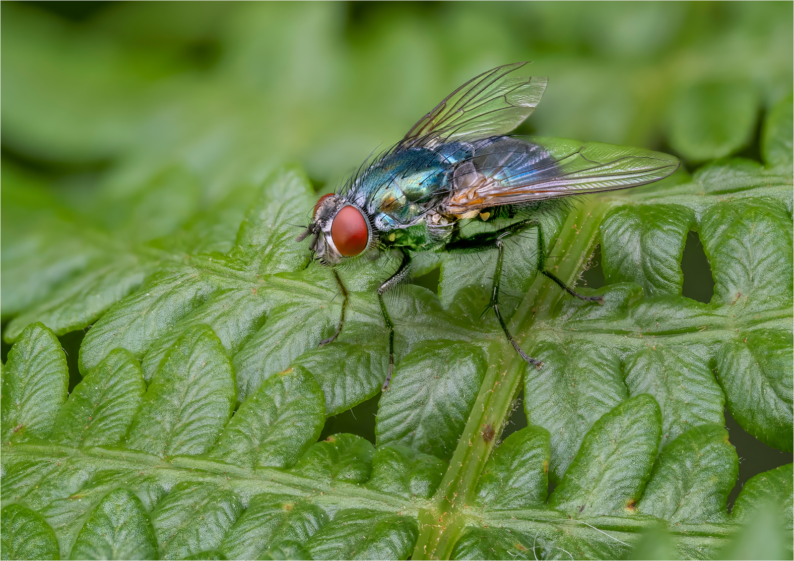 At last there has been some suitable weather to go out and shoot flies. These are all stacked images taken with my OM-1 and 90mm macro, and processed in Zerene Stacker. I used a monopod and supporting stick to steady the camera, and natural light.