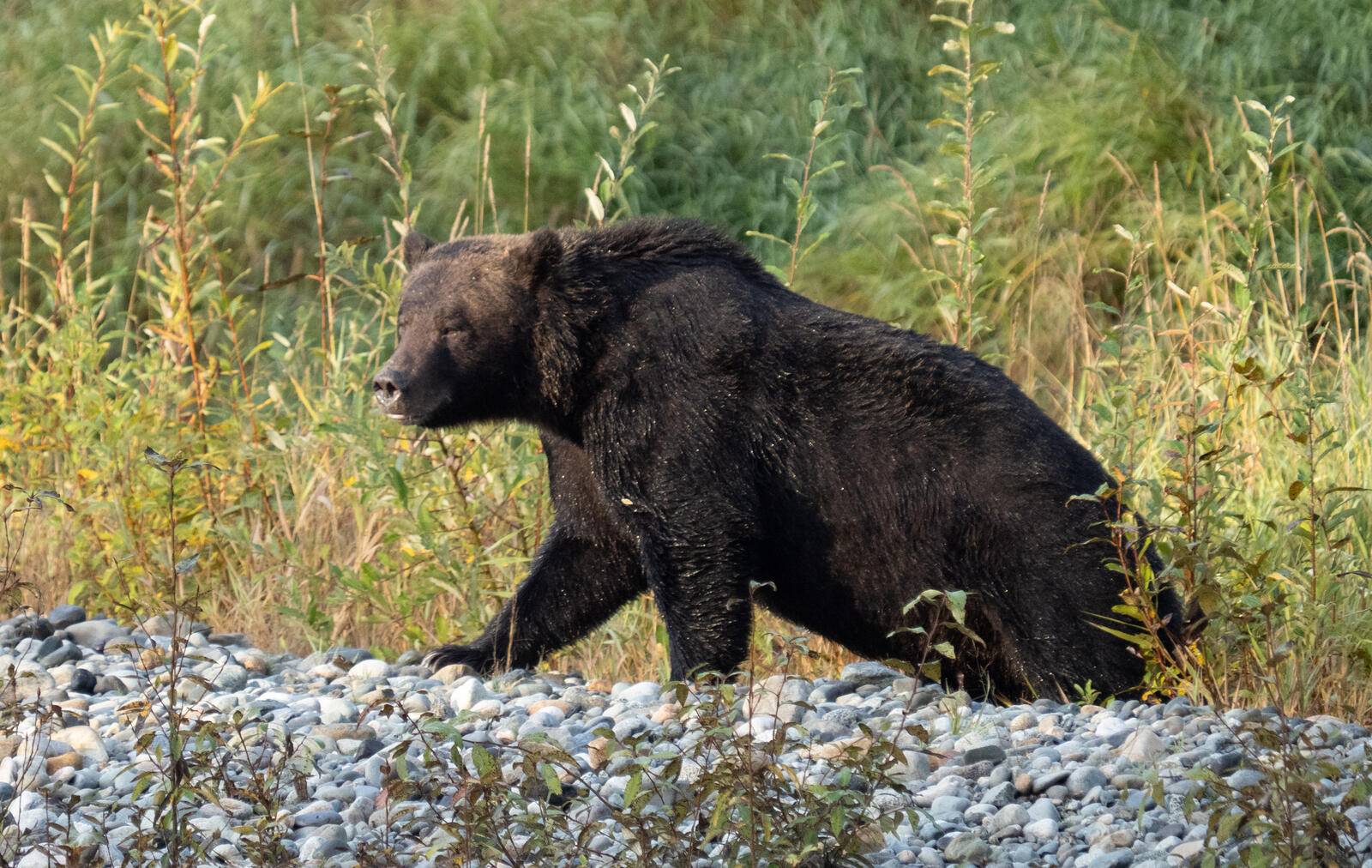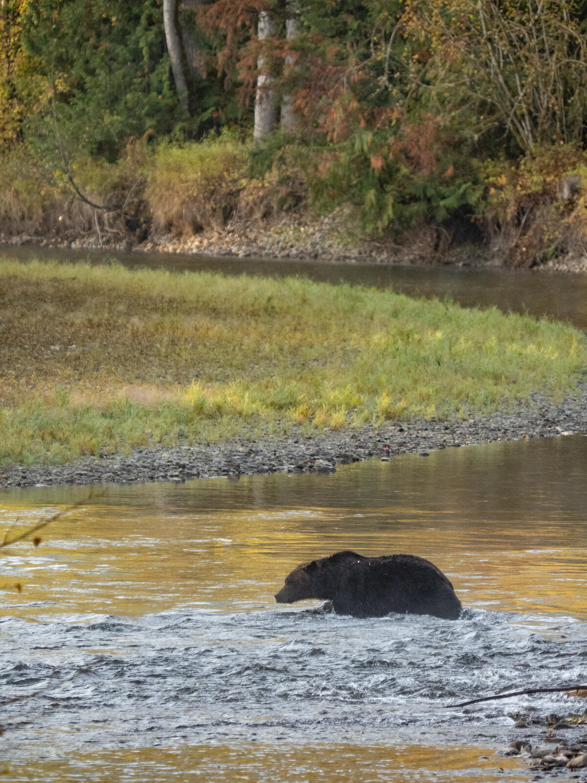 Currently I’m in Canada, British Columbia specifically, and have a few Grizzly Bear images taken on a trip to the Great Bear Rainforest, near to a small place called Bella Coola. Here is a sequence I caught whilst everyone else was at breakfast (it seems the Canon and Nikon shooters need more calories to cart their huge lenses around) and I was alone at the viewing area. I met this big guy, called Rocky, who is a young male Grizzly and has attained his full height but apparently when he matures the guides expect him to be the largest they’ve ever seen. Anyway he saw me, stood still for a moment and calmly turned and went up river.