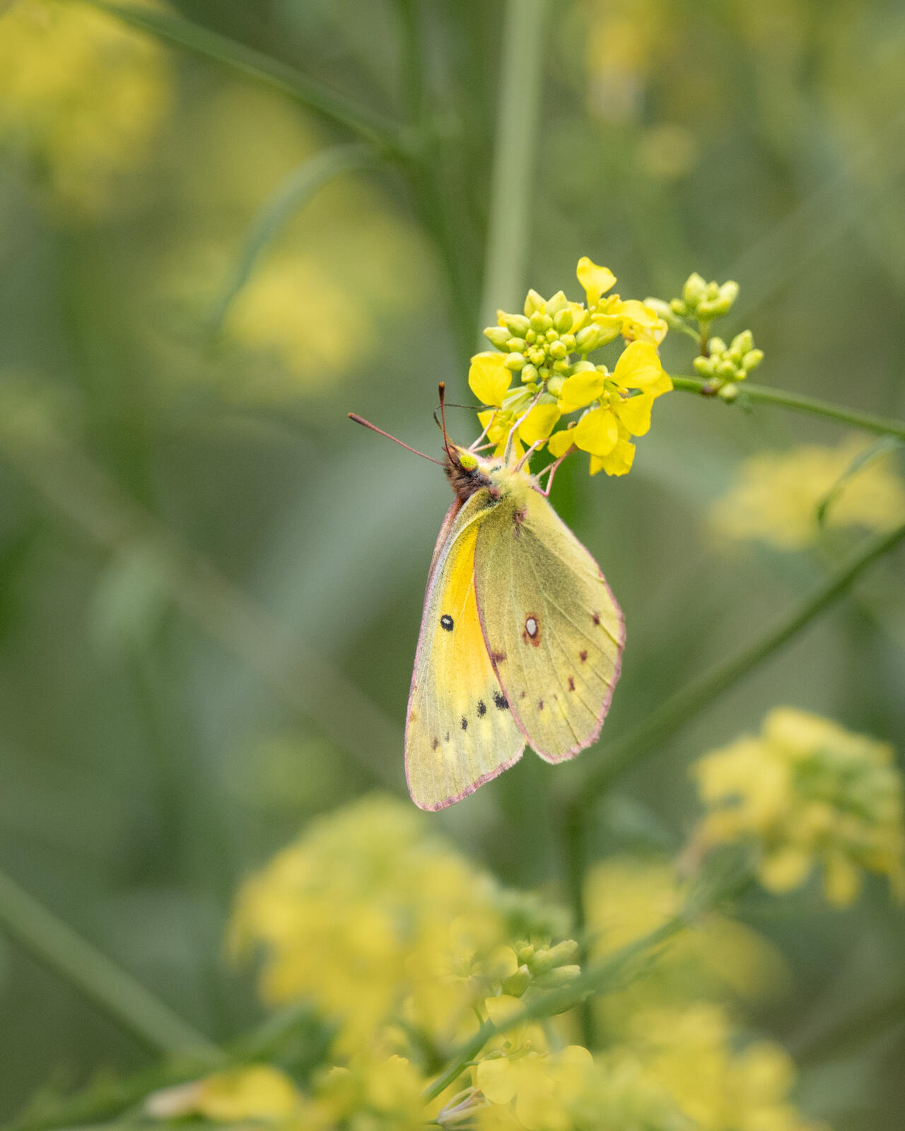 The butterfly looks like what we’d call a Clouded Yellow over here, that is the European species. My google search turned up this one for North America
