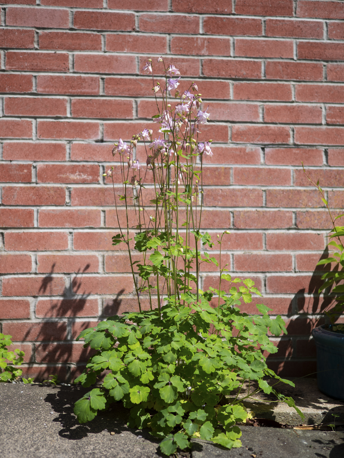 A couple of years ago, a rather fine Aquilegia/ Columbine, about a metre high, grew out of a gap in the slabs in front of the conservatory.