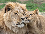 Yorkshire Wildlife Park Lion 'Teddi' and one of the cubs, share a tender moment.